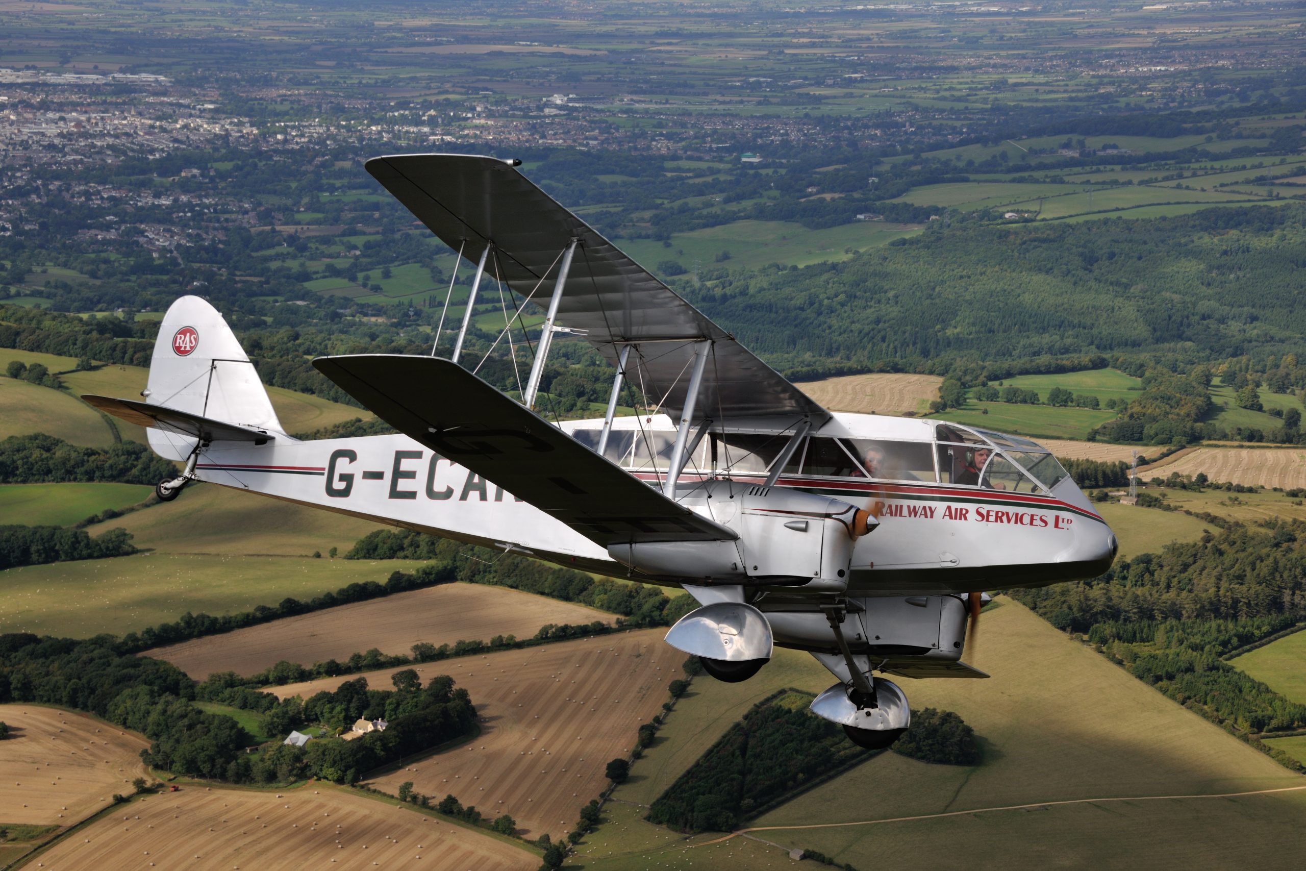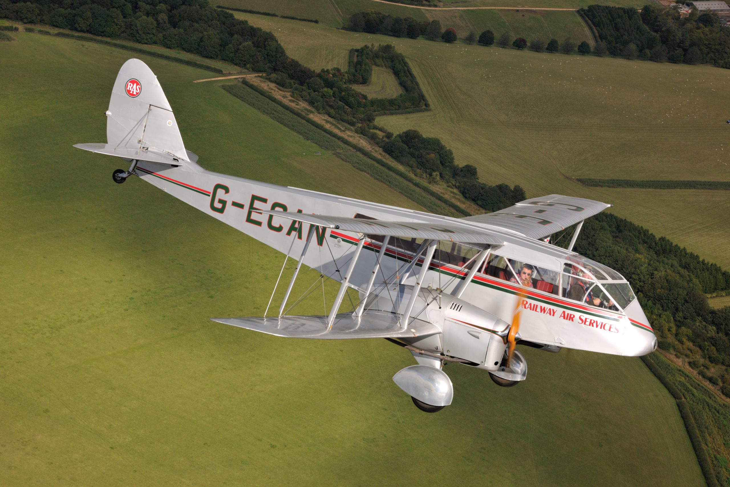 Design: The DH.84 Dragon is a fabric-covered biplane with a plywood fuselage.